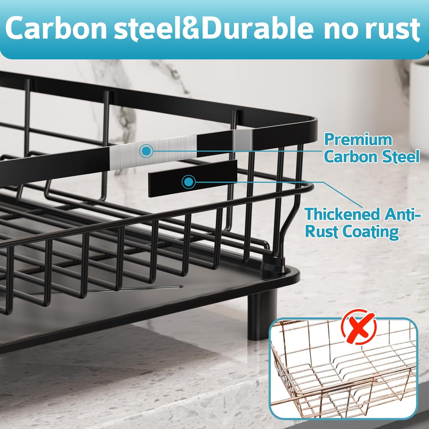- 【Sturdy & Durable】This dish rack for kitchen counter is made of high-quality carbon steel and coated with an anti rust coating to protect the rack from rust. It is durable and easy to clean. This drying rack kitchen has passed a 24-hour salt spray test, making it a trusted metal drying rack choice for every family, providing better protection for your kitchenware