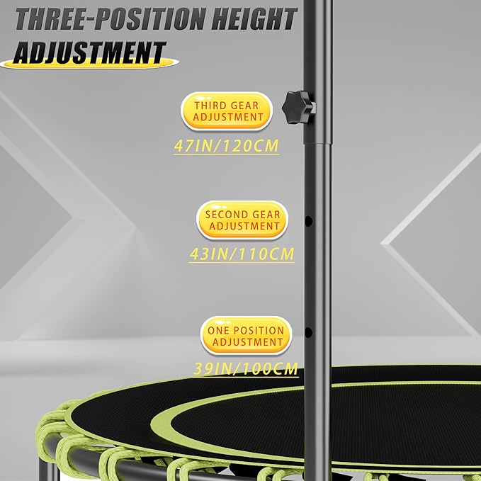 40" Fitness Trampoline with Adjustable Handle Bar Silent Mini Trampoline Bungee Rebounder Jumping Cardio Trainer Workout for Adults - Maximum Load 150 kg
