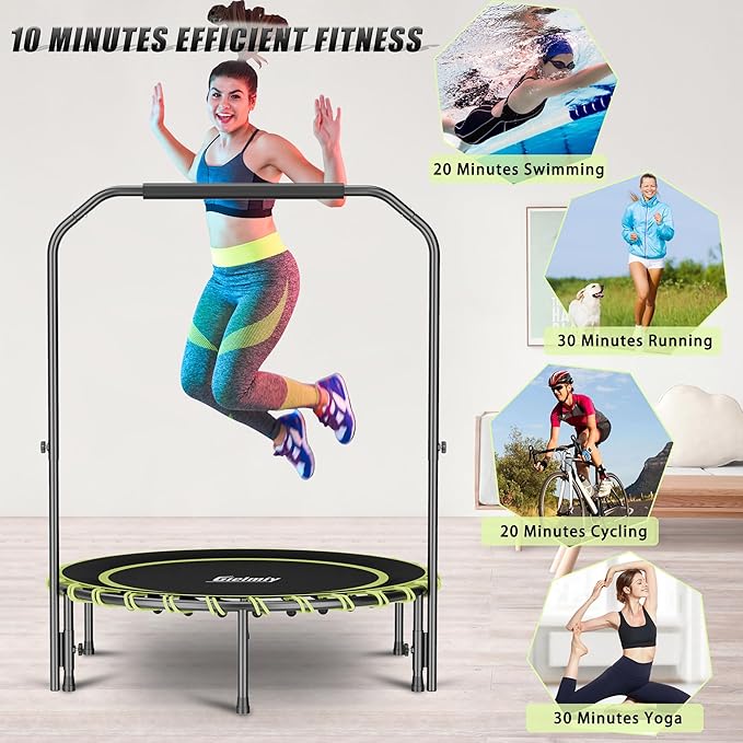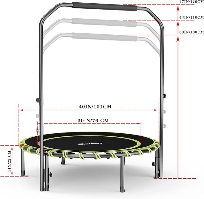 - ✅【Stable Structural Design】:Gielmiy Fitness Trampoline is made of thick tube which is 25MM, 6 legs 25MM of the diameter ,supports for more durability and covered with White powder coating to prevent rust and corrosion.Thanks to its premium quality, boasts an extended lifetime to witness your precious journey from a total beginner to a star pro!