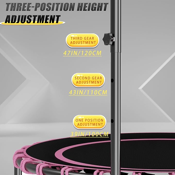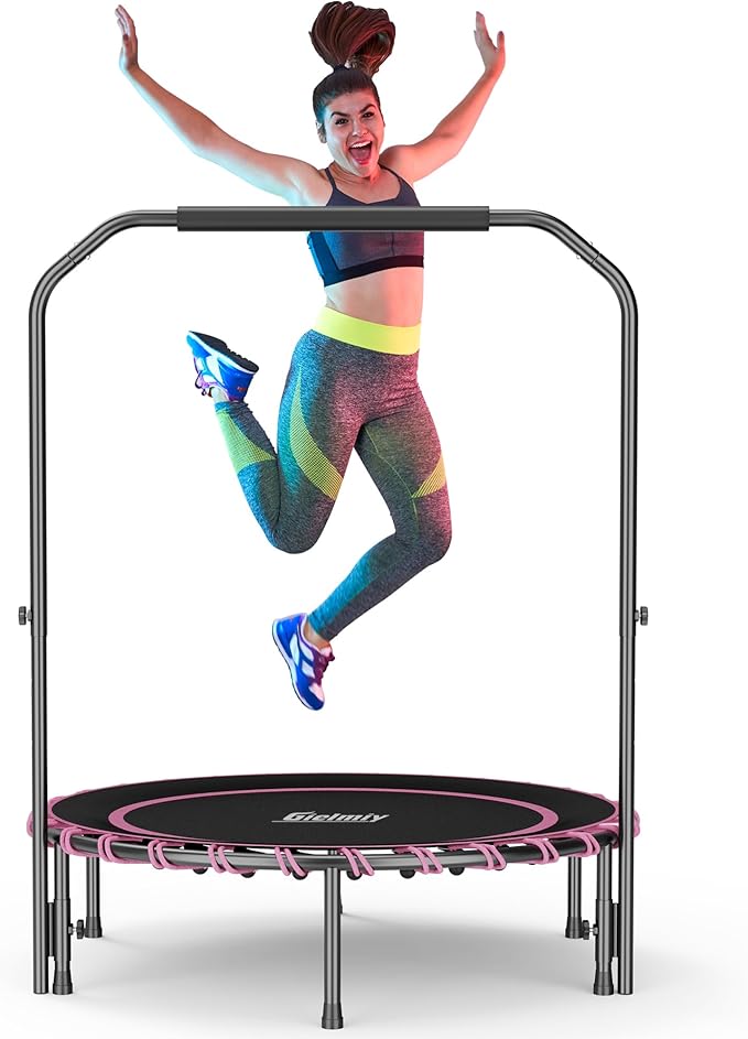 - ✅【Stable Structural Design】:Gielmiy Fitness Trampoline is made of thick tube which is 25MM, 6 legs 25MM of the diameter ,supports for more durability and covered with White powder coating to prevent rust and corrosion.Thanks to its premium quality, boasts an extended lifetime to witness your precious journey from a total beginner to a star pro!