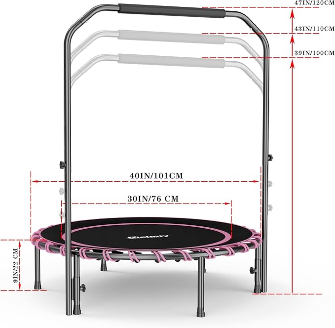 40" Fitness Trampoline with Adjustable Handle Bar Silent Mini Trampoline Bungee Rebounder Jumping Cardio Trainer Workout for Adults - Maximum Load 150 kg