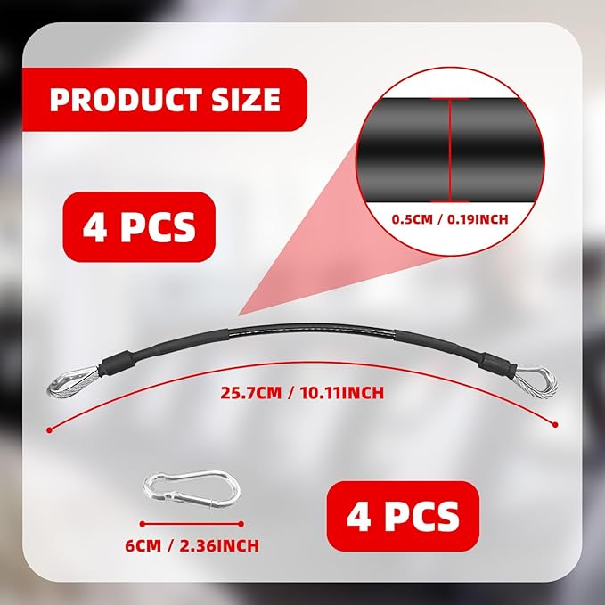 - PACKAGE INCLUDES: You will receive 4 x home gym extension cables and 4 x carabiners. Our gym extension cord is approximately 10 inches/25.4 cm long.