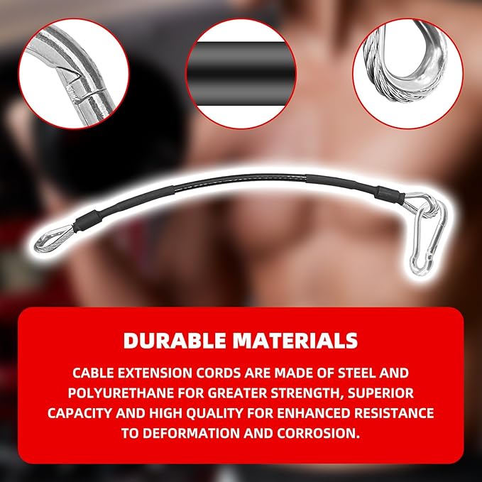- HIGH QUALITY: Our fitness extension cables for gym are made of stainless steel, wear-resistant and sturdy, durable and long-lasting.