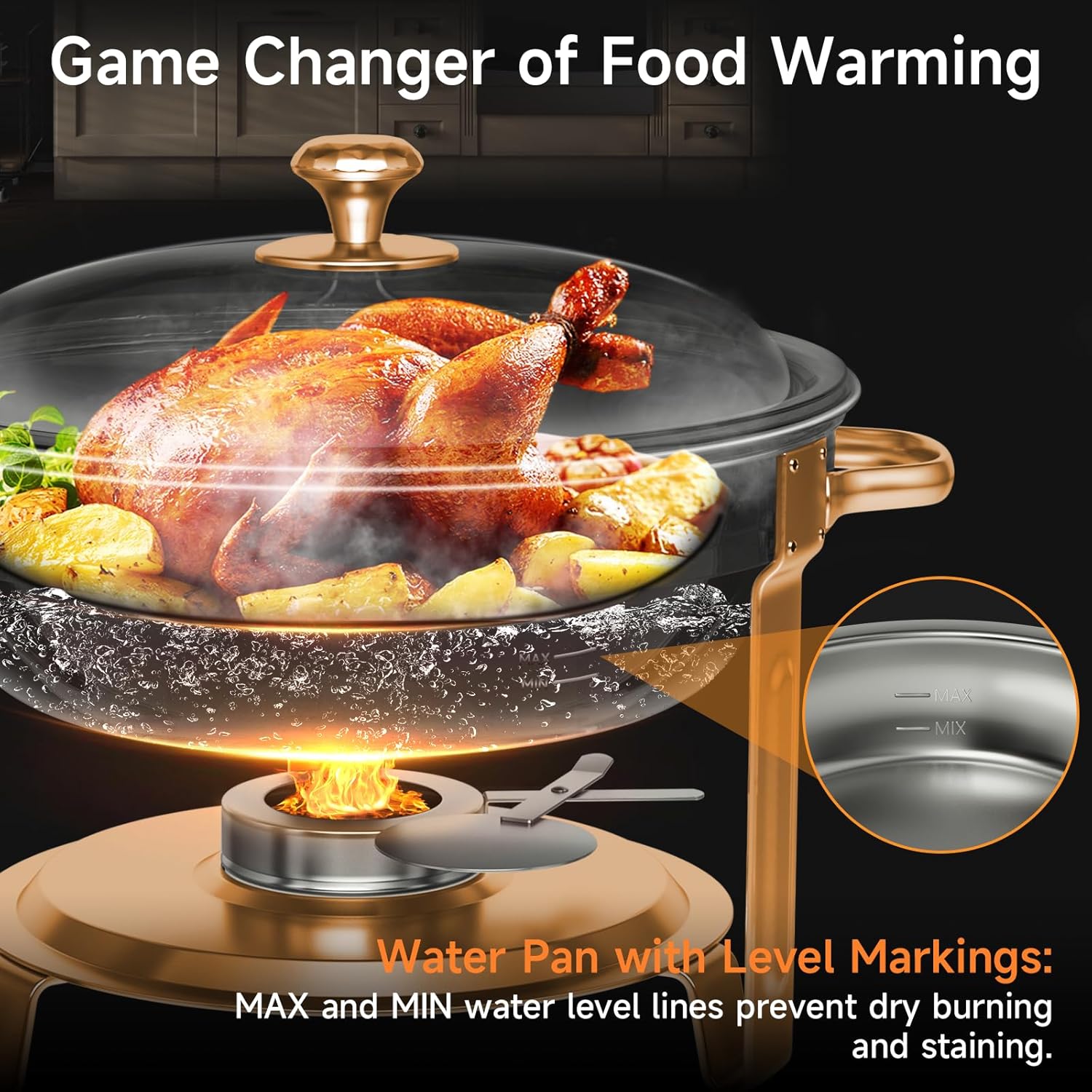 - [Water Level Indicators]: The water basin includes clear maximum and minimum water level markings. This design helps you maintain the optimal water level for up to 6 hours of warming and prevents the basin from drying out. The basin also features a lip design that fits securely onto the stand, minimizing movement and ensuring stability.