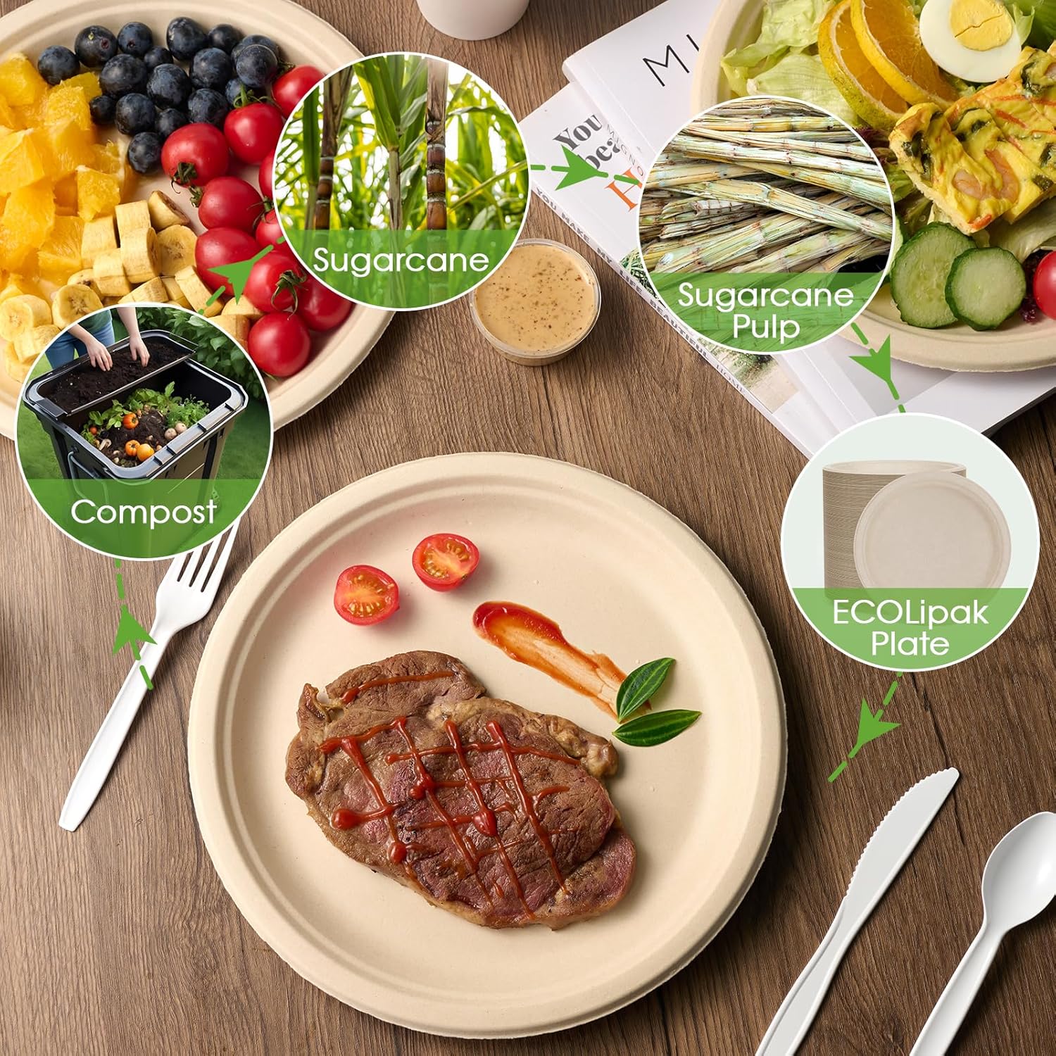 - Green Choice: Our 10 inch disposable paper dinner plates are made from 100% biodegradable sugarcane, avoiding tree cutting and protecting the environment