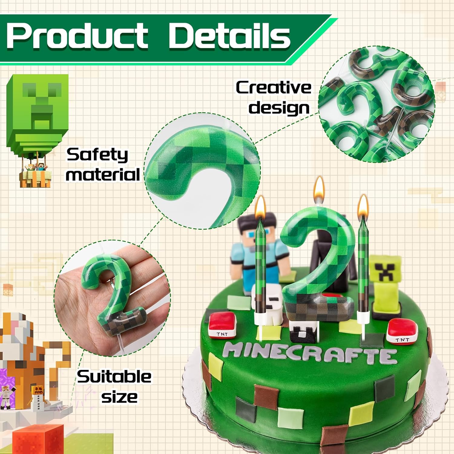 - Multiple Occasions: You can use these candles in many occasions birthday cake, such as birthday party, theme party, summer party, pixel theme birthday party, anniversary party, dynamite theme party, Video Game Party, these candles can show your good taste
