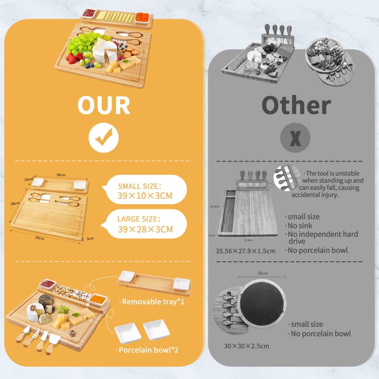 - Surprisingly creative party display - Get it! You can host any party! The perfect design allows you to use it in many ways. Enjoy the beauty of life, the perfect gift for any occasion. Our elegant cheese board gift set comes with a decorative box and guide, which is ideal for housewarming, weddings and celebrations.