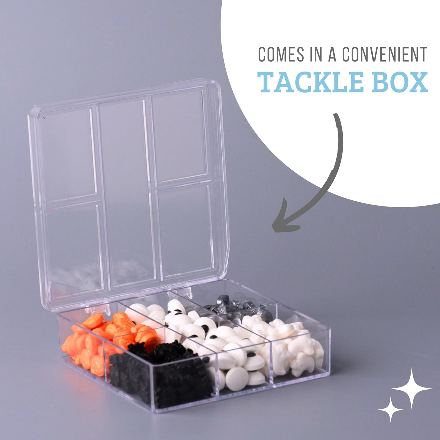 - Tackle Box: Our Tackle box comes with three different eyeball sizes: Small (7mm) Medium (10mm) and Large (18mm)