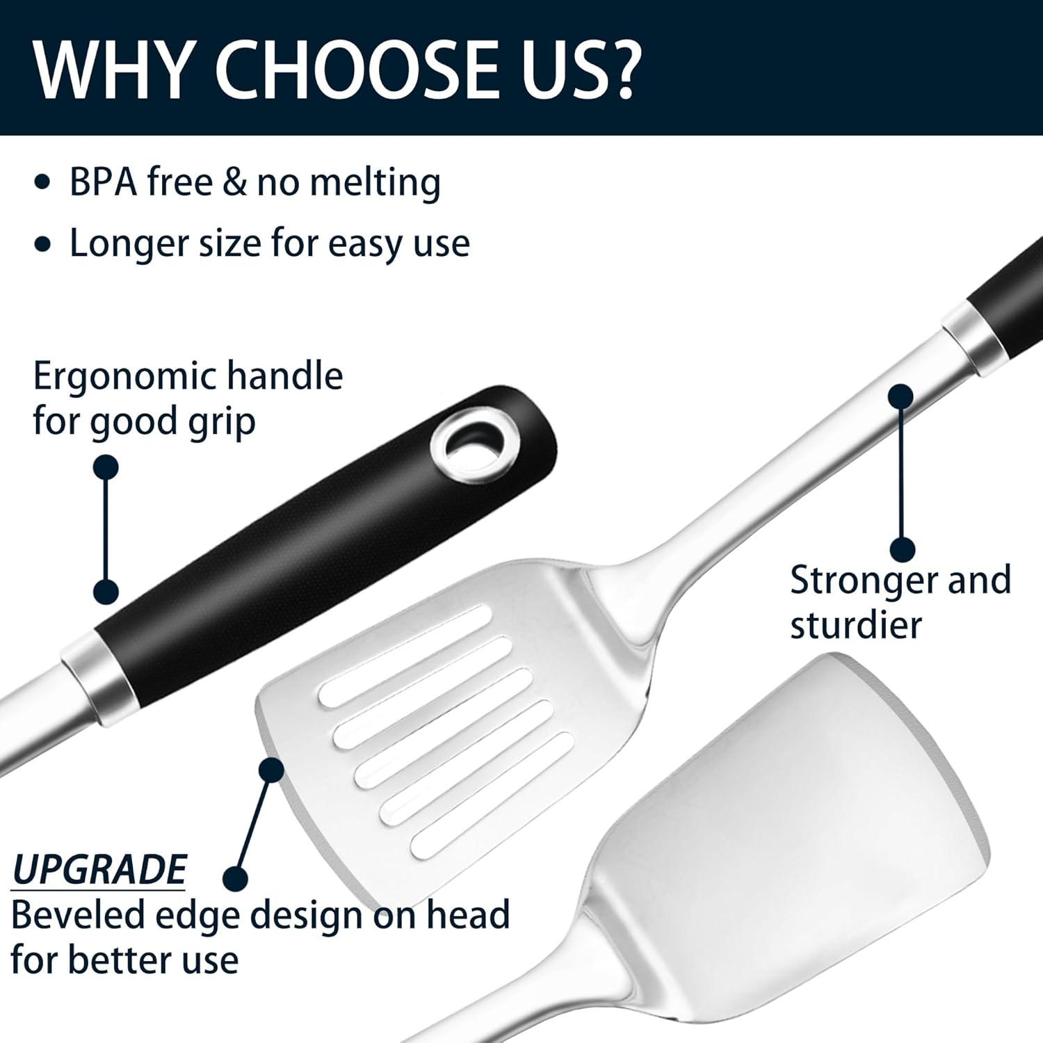 - WHY 18/0 STAINLESS STEEL - Won't melt or break like silicone spatulas and won't mold like wooden spatulas, a healthier choice that keeps you away from silicone PFAS PFOA PTFE etc,.!