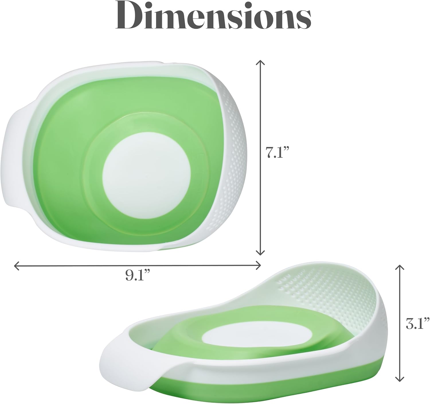 Kitchen Gizmo Collapsible Rice Strainer - Silicone Rice Washer Strainer Bowl - BPA Free - Space Saving Design - Lightweight and Easy to Clean - 5.5 to 3.15 Inches High - Green/Grey