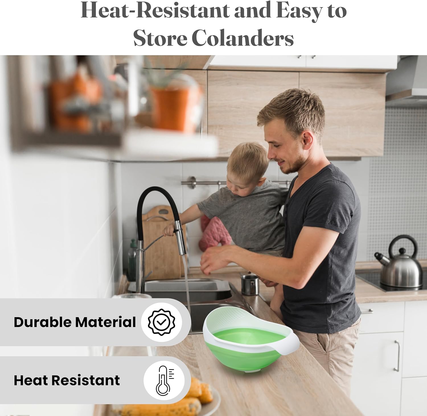 - Save space with ease: This collapsible rice strainer folds from 5.5 inches to just 3.15 inches, making it perfect for compact storage in kitchen drawers, cabinets, or small living spaces.