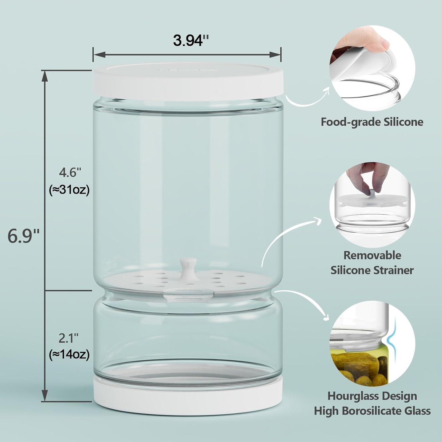 - Effortless Pickle Strainer: Perfect for brining, fermenting, and serving pickles, olives, jalapeños, and cocktail onions. The built-in pickle strainer allows mess-free draining while preserving flavorful brines. Ideal for meal serving and refrigerator organization.