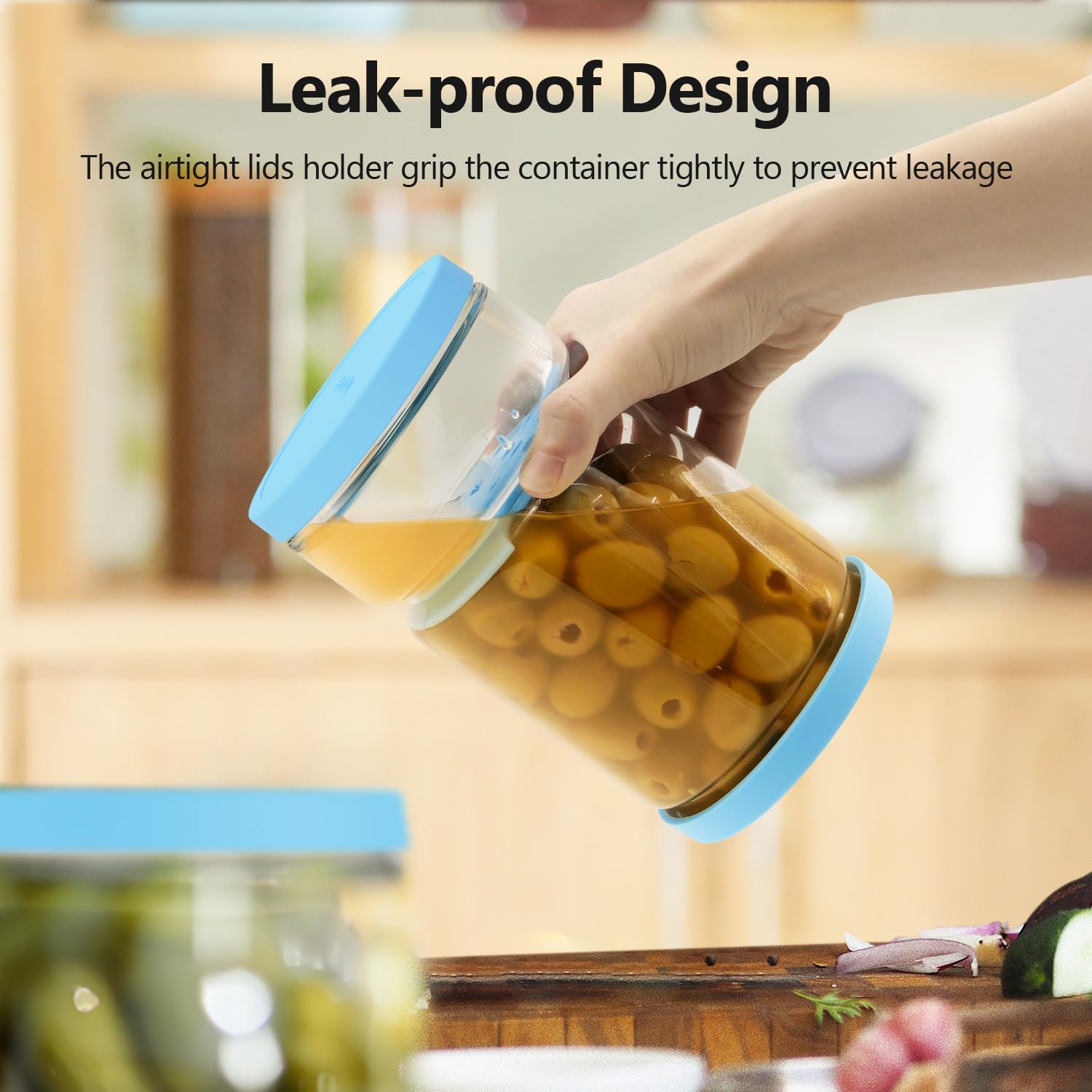 - Leak - Proof and Freshness - Locking: The airtight silicone lids create a tight seal, preventing any leakage and keeping your pickles, olives, or other stored foods fresh and flavorful for an extended period.