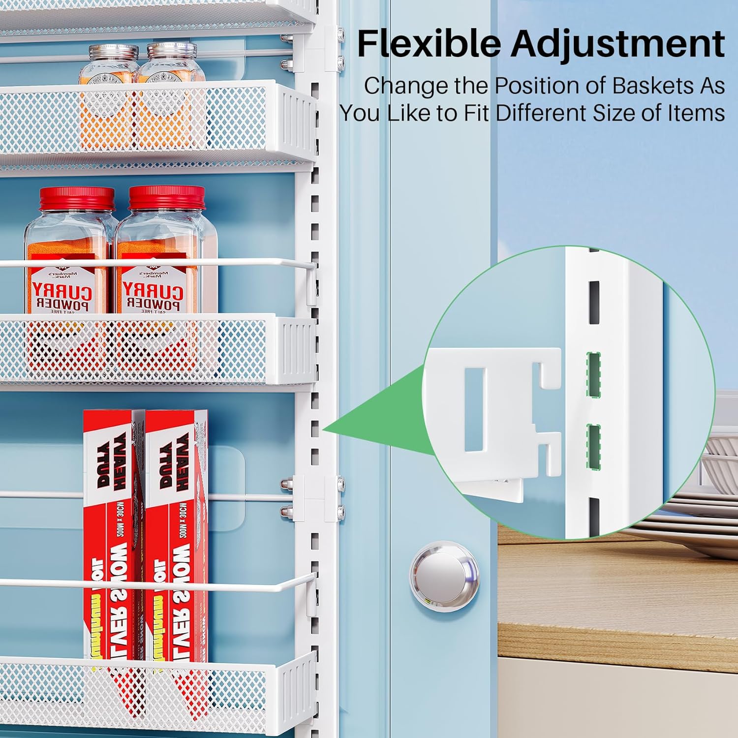 Over the Door Pantry Organizer - 8 Tier Adjustable Hanging Door Spice Rack, Large Capacity for Kitchen Pantry Storage (White)