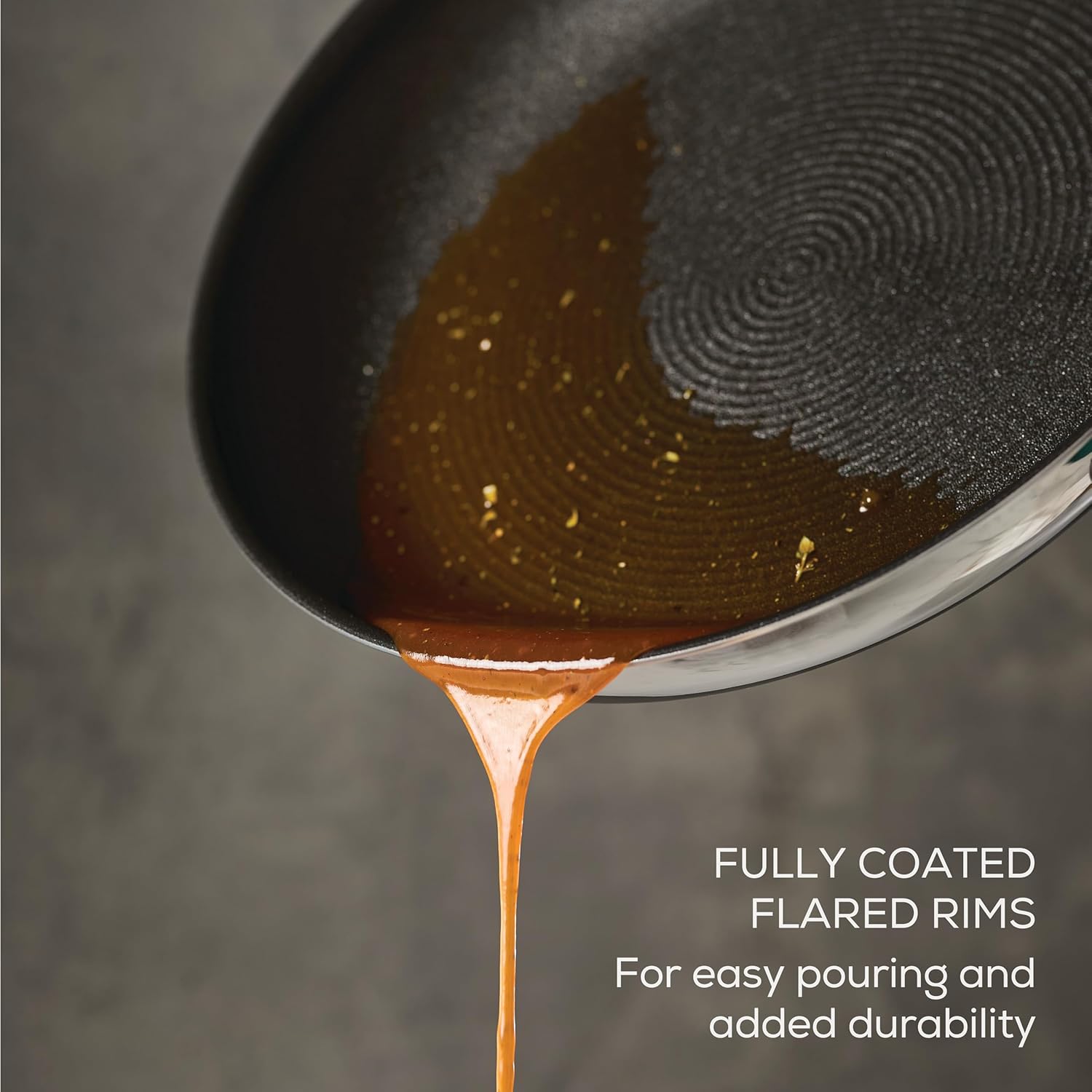 - CONVENIENT FEATURES: This high-performance collection spares no expense attending to the details with often-overlooked but immeasurably convenient features like flared rims for easy pouring and to protect the edges from everyday dings, ergonomic stay-cool handles, nonstick coated interior rivets, and shatter-resistant oven-safe lids.