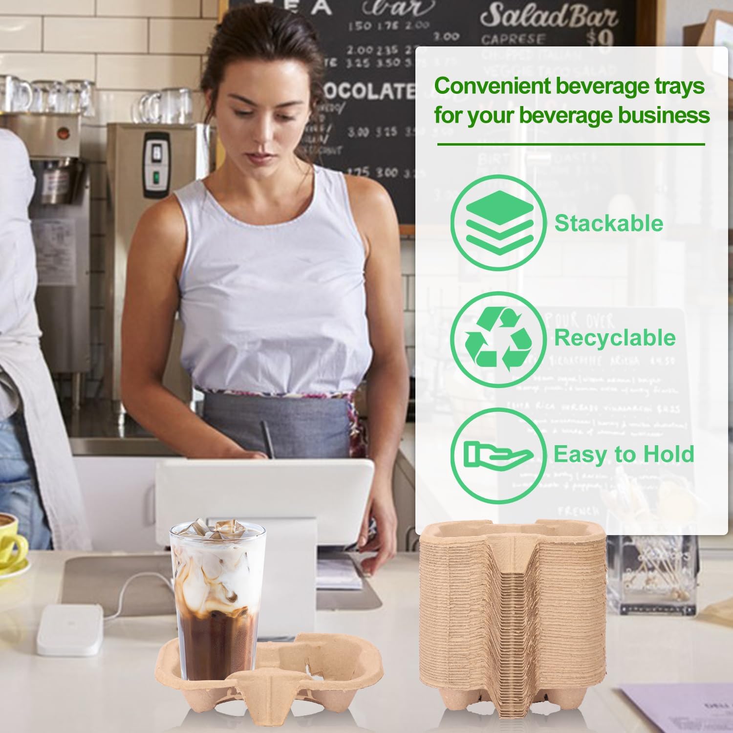 - 【Stackable Design for Easy Storage】 Our cup holders for drinks are not only handy, but they're also stackable for efficient space-saving storage. This practical design makes our drink carriers an ideal choice for coffee shops, grocery stores, takeaways, and more.