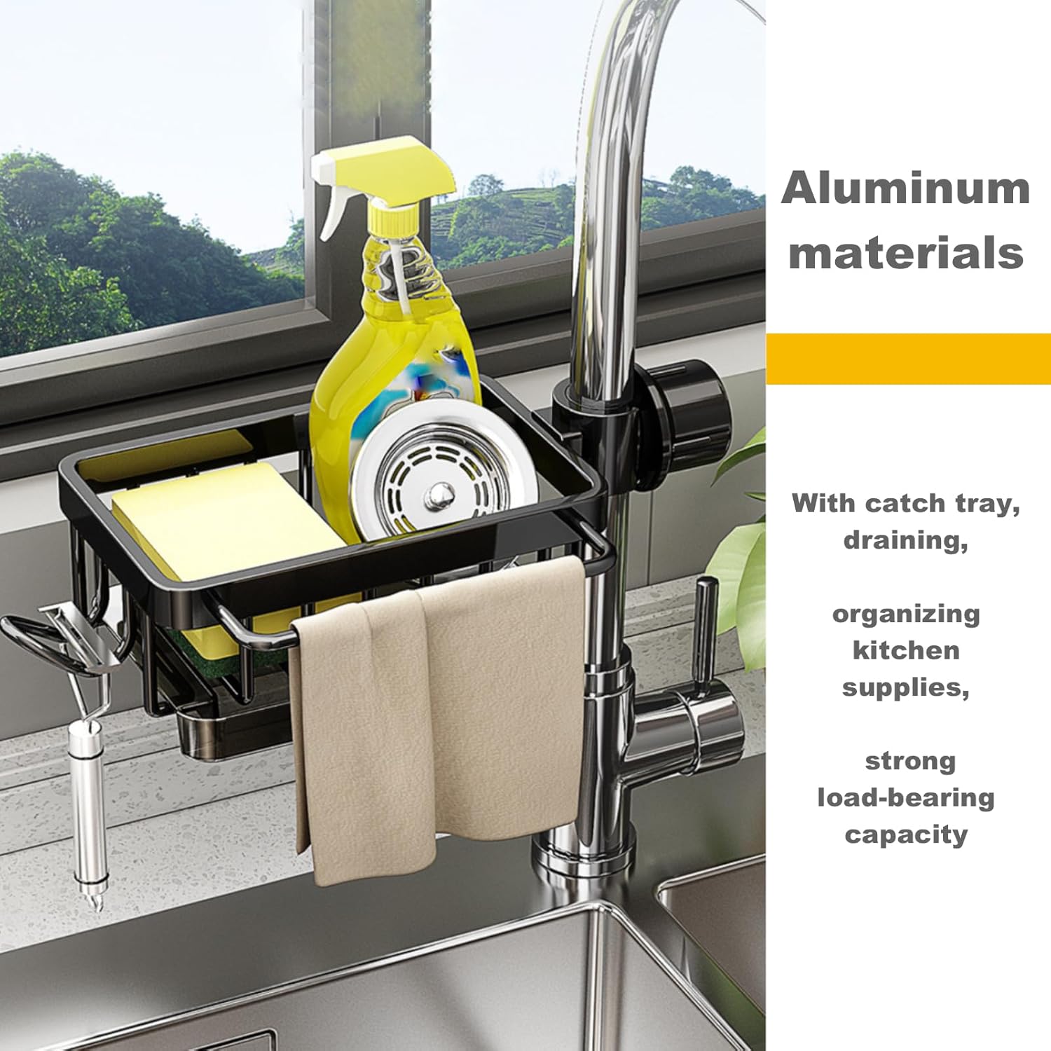 - 【Rustproof and durable materia】Our kitchen sink organizer rack, which is waterproof, rust-proof, fingerprint-proof, solid and firm, and has high load-bearing capacity,crafted from premium space aluminum, offers optimal organization capabilities thanks to its robust load-bearing capacity and stylish design. Serving as a reliable assistant for your organization needs, it facilitates quick drying of your daily essentials.【⚠️Note:This kitchen sponge holder is only suitable for round faucets(pipes of 18-28 mm(0.7'' - 1.1'') outer diameter,Always measure your faucet/pipe dimensions before purchasing), not for square faucets.】