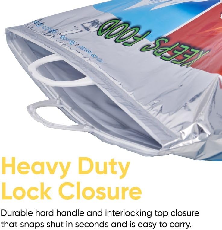 - ✅ HEAVY DUTY LOCK CLOSURE - Every size bag has a durable hard handle and interlocking hard top closure that snaps shut in seconds and is easy to carry. The durable closing mechanism keeps your food fresh and insulated from outside temperatures (hot or cold) and humidity for hours at a time.