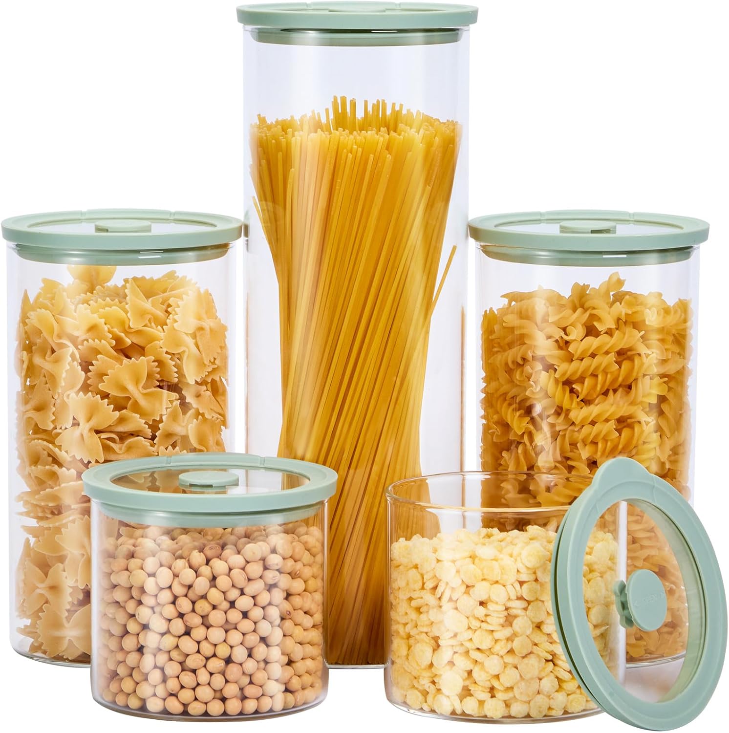 Glass Food Storage Jars with Lids[Set of 5], Perfect for Pasta, Cookies, Nuts, Coffee, Cereal, Flour, and More, Organize Your Kitchen with these BPA-Free Glass Jars with Silicone Lids