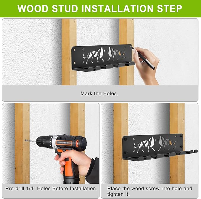 - 【Easy Installation】Our rack is easy to install and remove. The package includes all mounting hardware, including 4 expansion screws for mounting on concrete walls and 4 wood screws for wood beams. The screw holes are spaced 12 inches, 14 inches and 16 inches apart to fit standard wall studs, Compatible with 12-inch, 14-inch and 16-inch wood studs.
