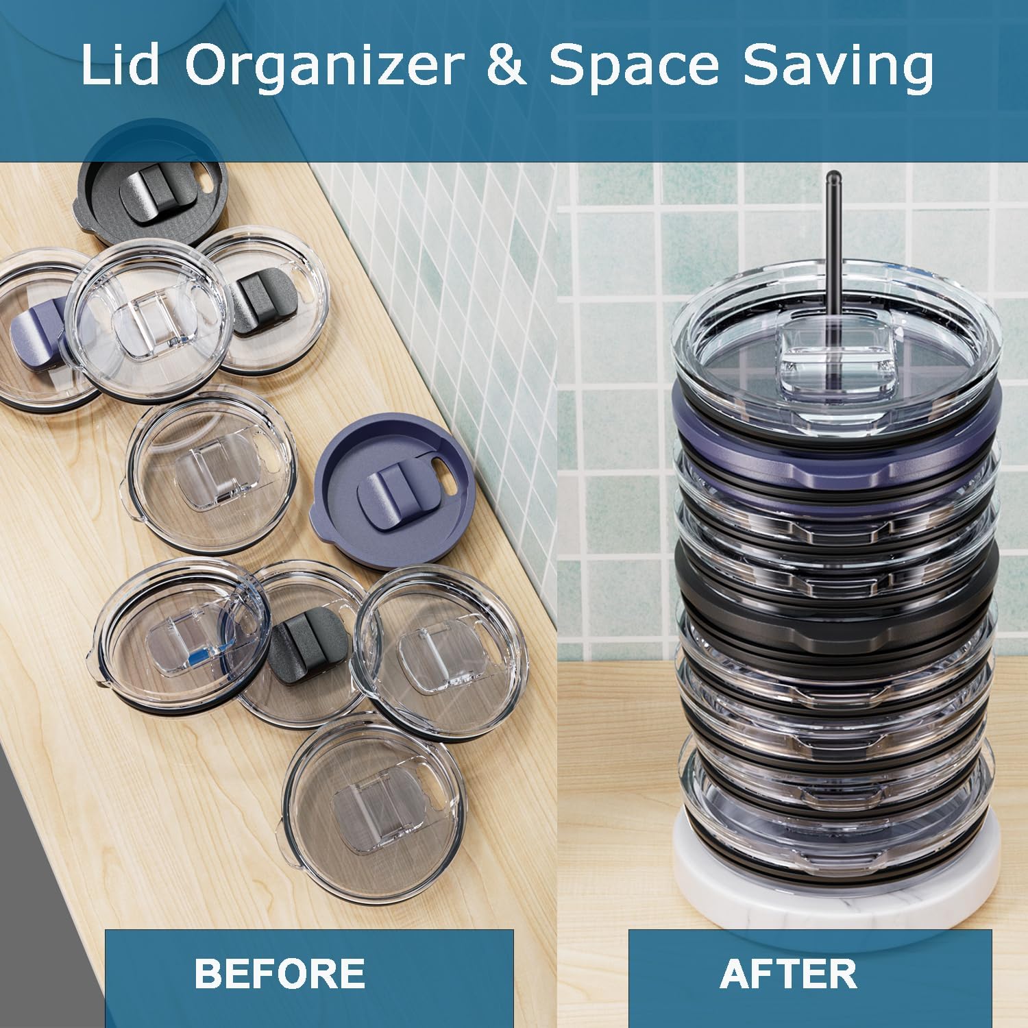 - Universal Fit: 3/20 inch(4mm) width designed to accommodate any size of tumbler lids including staw-lids, a perfect organizer for those popular brands like Stanley and Yeti. Stackable design ensures efficient storage and organization of lids, preventing clutter and keeping your kitchen tidy.