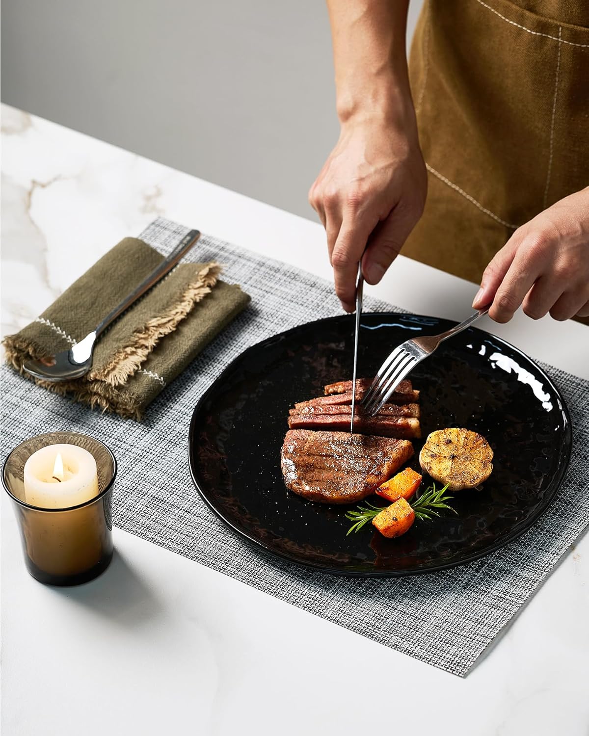 - 【What Will You Receive】Ideal for large families, couples, or individuals, 16 pieces black dishware set includes: 6 x 10.7" Large dinner plates, 6 x 8.7" salad plates, 6 x 8" Pasta bowl and 6 x 6" cereal bowls, perfect for daily meals, gatherings, and special occasions.