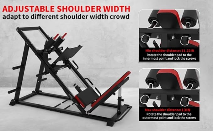 - ADJUSTABLE SHOULDER WIDTH:Adjustable shoulder width design can provide smooth training experience for all family members.The width can be adjusted from 11 to 13 inch to adapt different shoulder width.The adjustable backrest (4-level adjustable) and adjustable safety stop (3-level adjustable) make this home fitness equipment suitable for everyone.