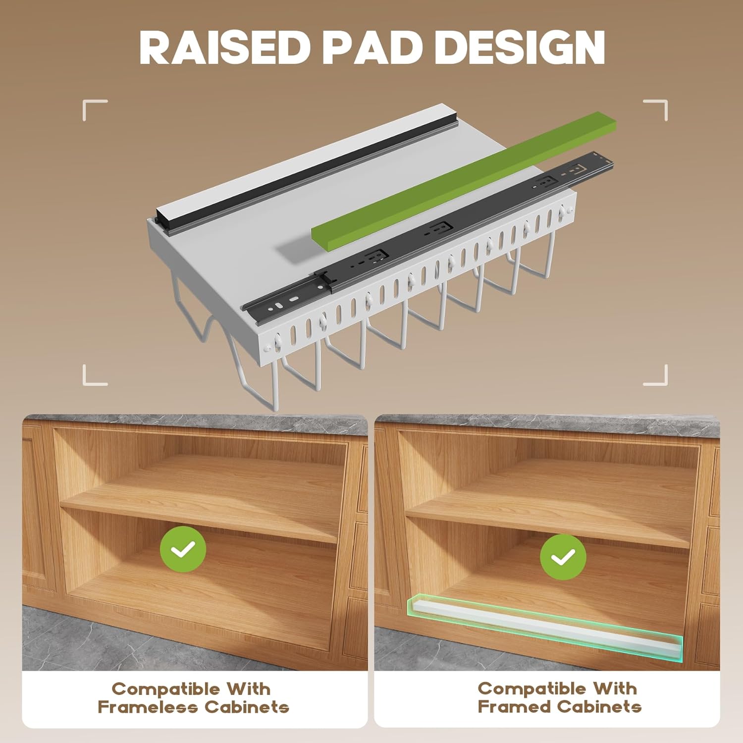 - 【Slide Pull Out Design】: The pot and pan lid rack is designed with sliding rails and a built-in pulley ball, which makes it easy to organize and store your cookware with just one pull. The pan lid organizers comes with 2 strips of tape to secure the slides inside the cabinet, which protects the cabinet from drilling and damage, uick setup with no tools needed. Slide out pots and pans organizers make the most of your kitchen space, providing you with a more efficient and hassle-free experience.