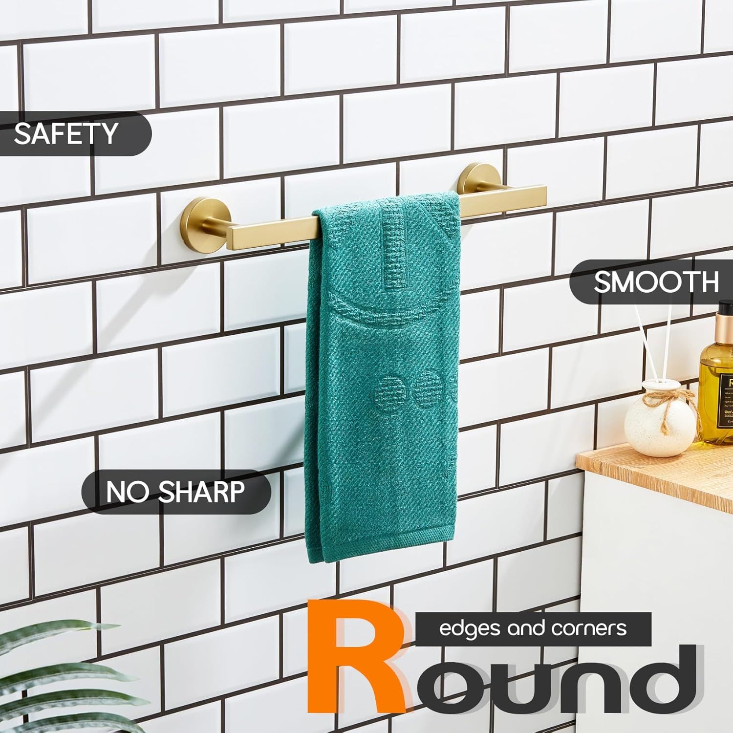 12 Inch Bathroom Towel Bar Bath Towel Rack Kitchen Towel Holder Towel Ring Wall Mounted SUS304 Stainless Steel Brushed Gold AN4001GD-L12