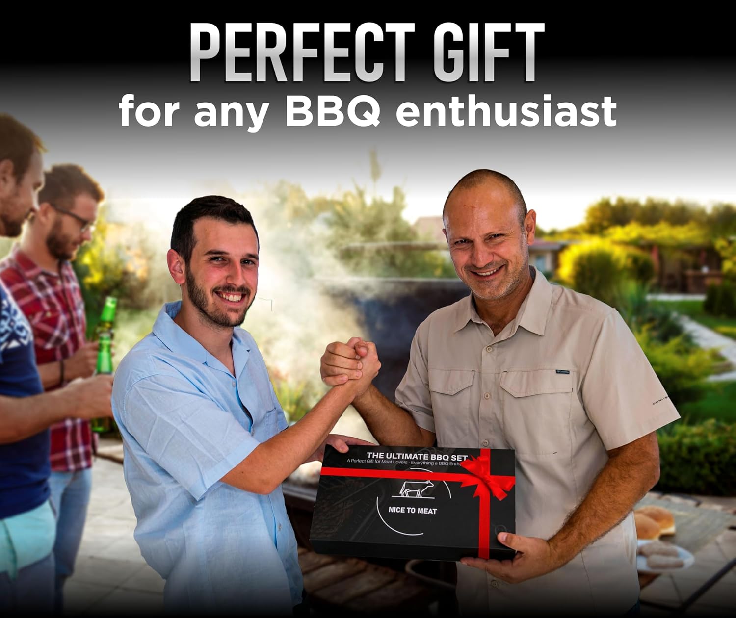 - Your Complete BBQ Set - This set includes everything you need for grilling, a meat thermometer digital wireless, a quality knife, a knife sharpener, and a two-pronged fork, so you’re fully equipped to cook.