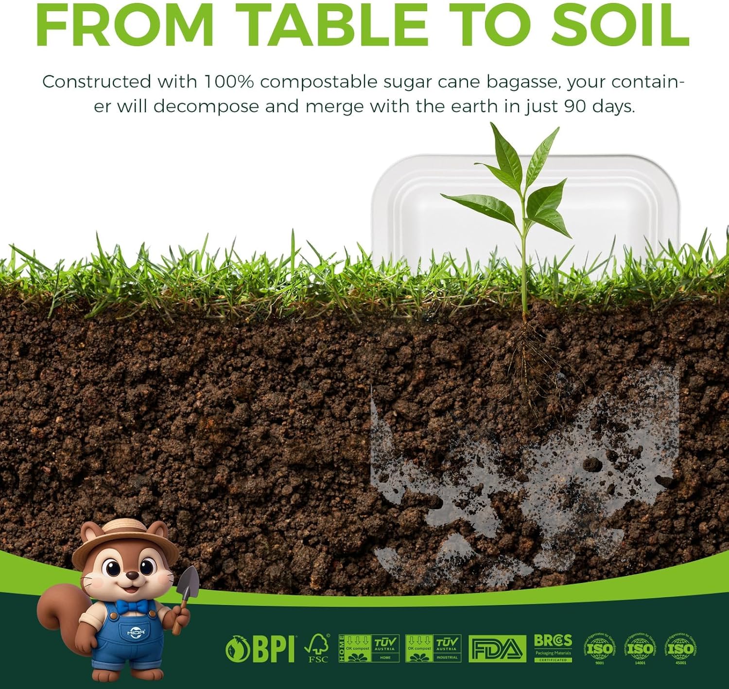 - Material : Bagasse, 100% sugarcan pulp