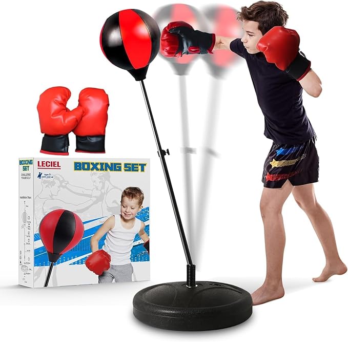 Kids Boxing Set - Punching Bag with Gloves & Adjustable Stand for 3-8 Year Olds