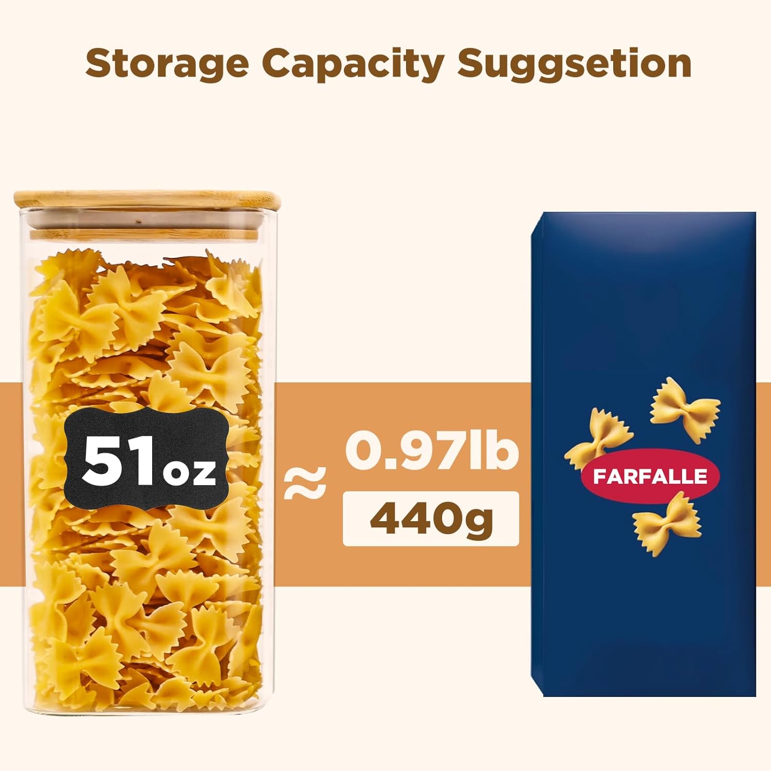 - [Product details] Square glass storage jar height:8.11in. Diameter:3.9in. Capacity:51oz(1446ml). Package contains: 3pcs. 3 pieces glass pantry storage containers with same volume meet you various storage need.