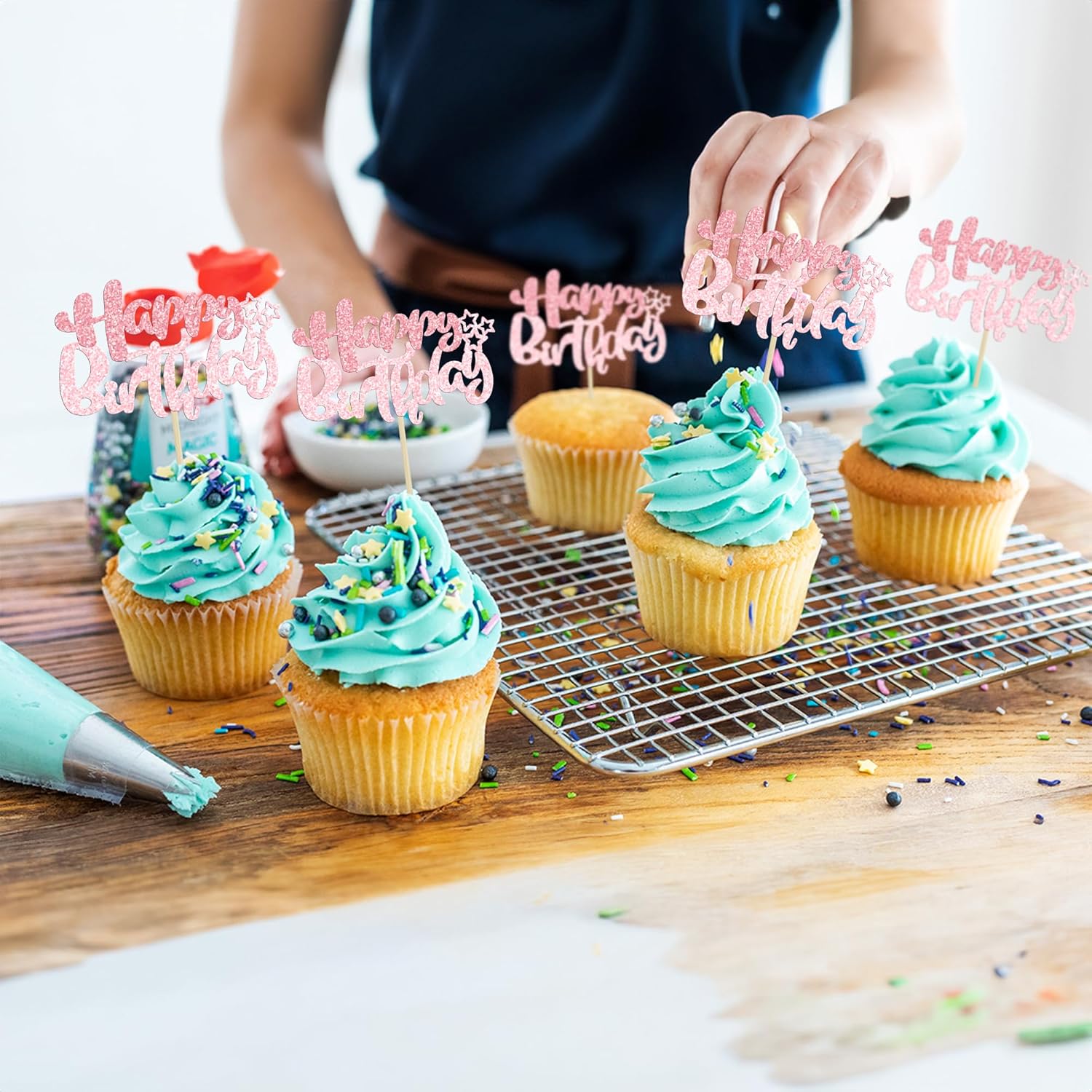 - 【Upgrade Quality】: 24Pcs Happy Birthday Cupcake toppers are made of high quality 300 gram glitter thick card stock and 100% food grade sticks, not easy to deform and fade, smooth edges without burrs, makes birthday cupcake toppers give you a wonderful visual enjoyment. It is durable enough for long lasting use.