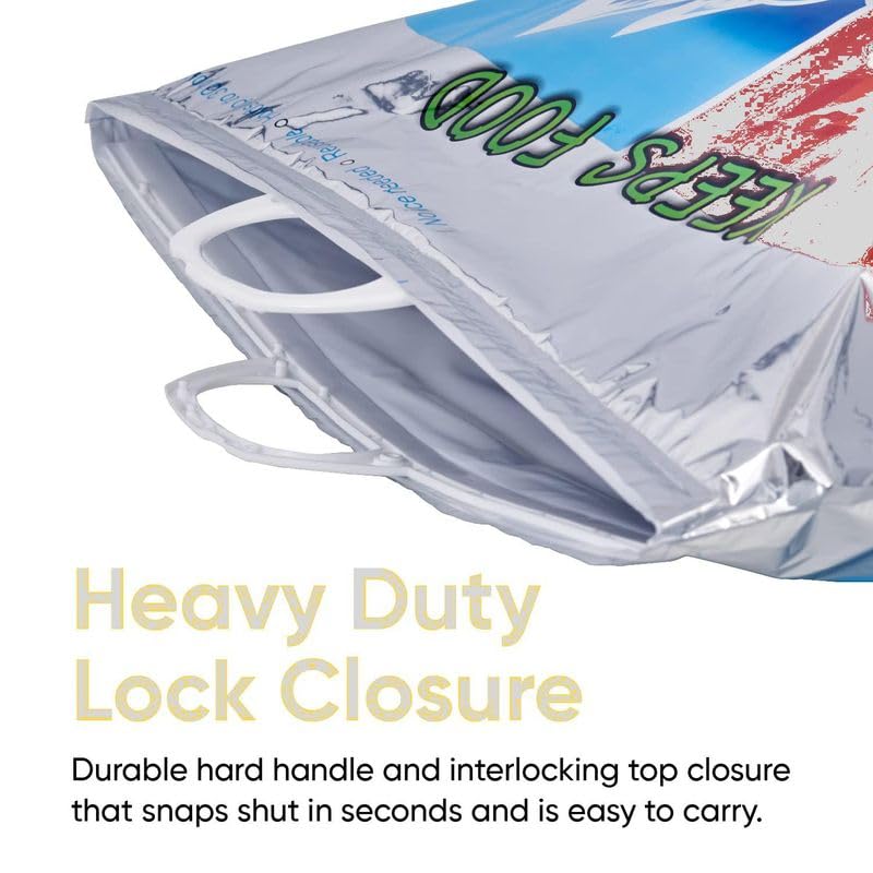 - ✅ HEAVY DUTY LOCK CLOSURE - Every size bag has a durable hard handle and interlocking hard top closure that snaps shut in seconds and is easy to carry. The durable closing mechanism keeps your food fresh and insulated from outside temperatures (hot or cold) and humidity for hours at a time.