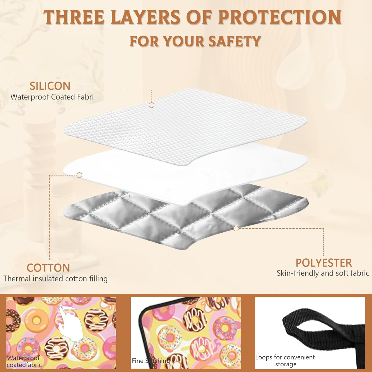 2 Pack Colorful Donuts Pot Holders for Kitchen Heat Resistant, Potholders for Kitchens Washable for Cooking & Baking & Microwave