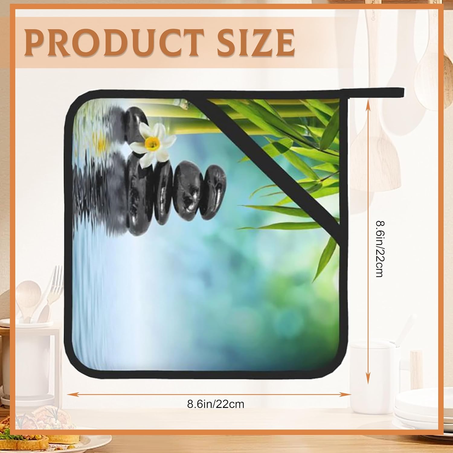 Zen Spa Pot Holder Set of 2,Green Flower Kitchen Heat Resistant Potholder for Women Men BBQ Cooking Baking