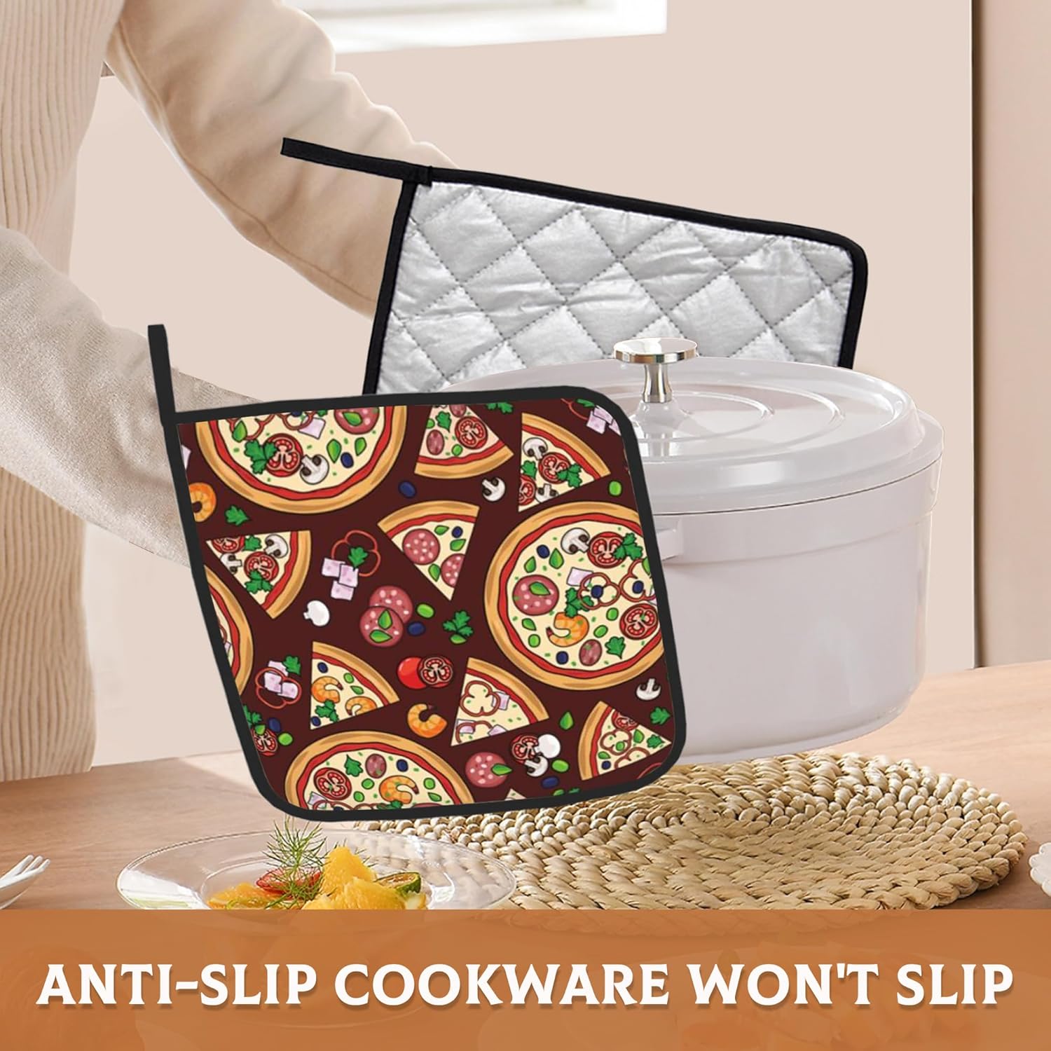 2 Pack Pizza Slices Ingredients Pot Holders for Kitchen Heat Resistant, Potholders for Kitchens Washable for Cooking & Baking & Microwave