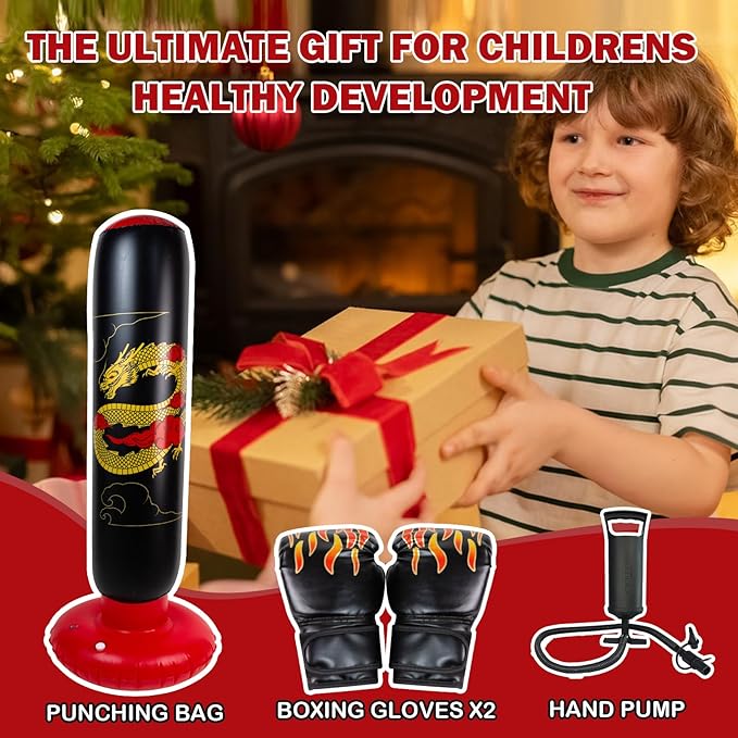 - GIFT FOR KIDS: Inflatable boxing bag for kids is suitable for daily sports and fitness use for children aged 6-12 years old.Usually parents have no time to accompany their children,This boxing bag is the perfect choice for personal interaction.Cultivate your child's comprehensive ability.Keep your child away from cell phones,Exercise your child's hand-eye coordination,Improve concentration, reaction and increase your child's self-confidence.It is a good choice for children's gifts!