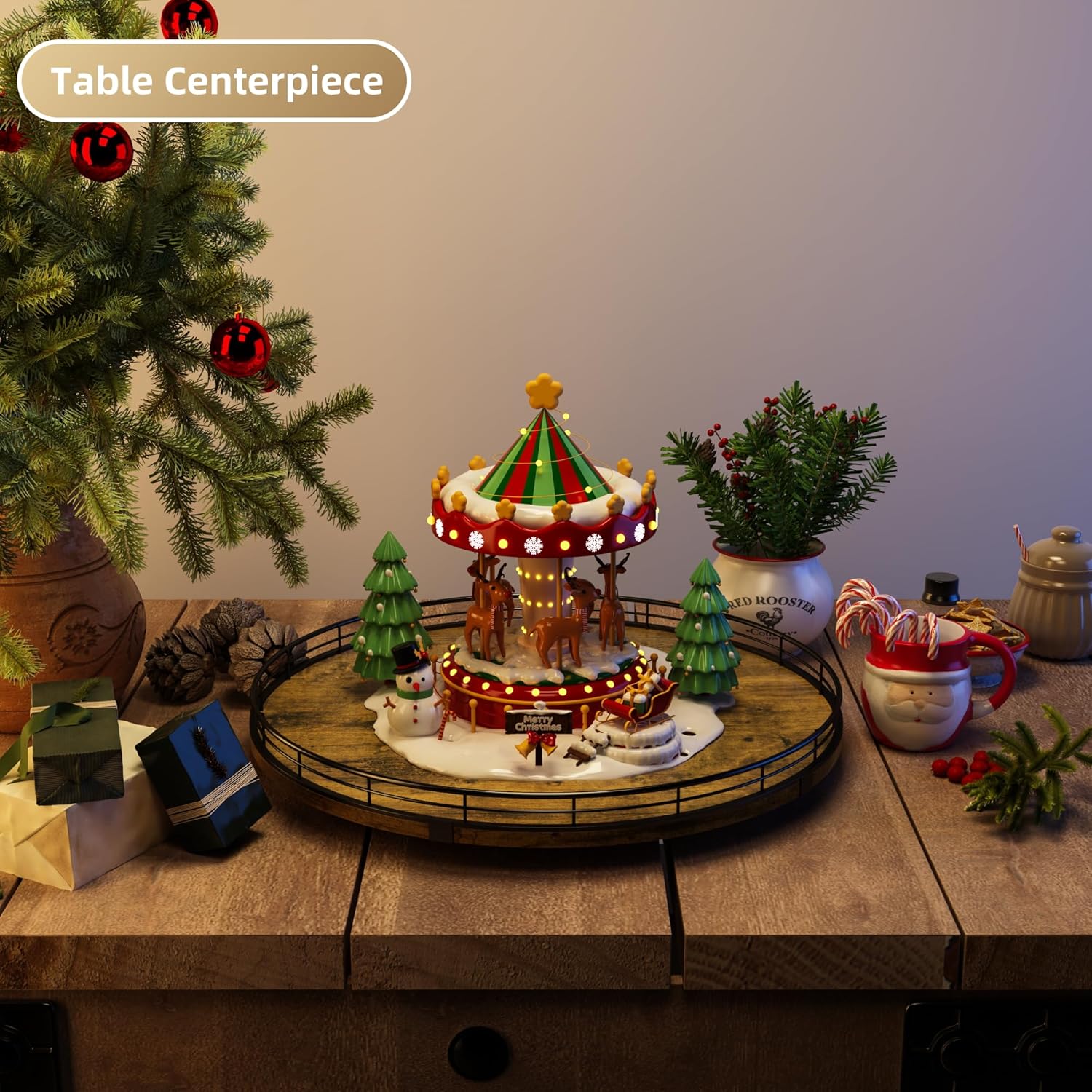 - Wide Application - The lazy susan organizer adopts handmade craftsmanship. Its MDF material is strong and long-lasting, not easy to wear and has no odor. The surface has exquisite texture, creating a unique rustic style