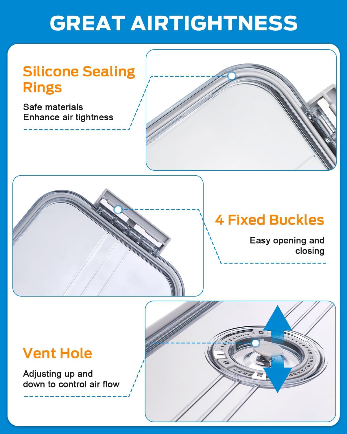 - Great Airtightness: These bread boxes have high-quality silicone sealing rings on the top and lid. Simply close the 4 buckles on the lid to provide high-quality sealing and ensure your bread is fresh and delicious. The lid is also equipped with an air valve, which you can adjust up and down to achieve air circulation