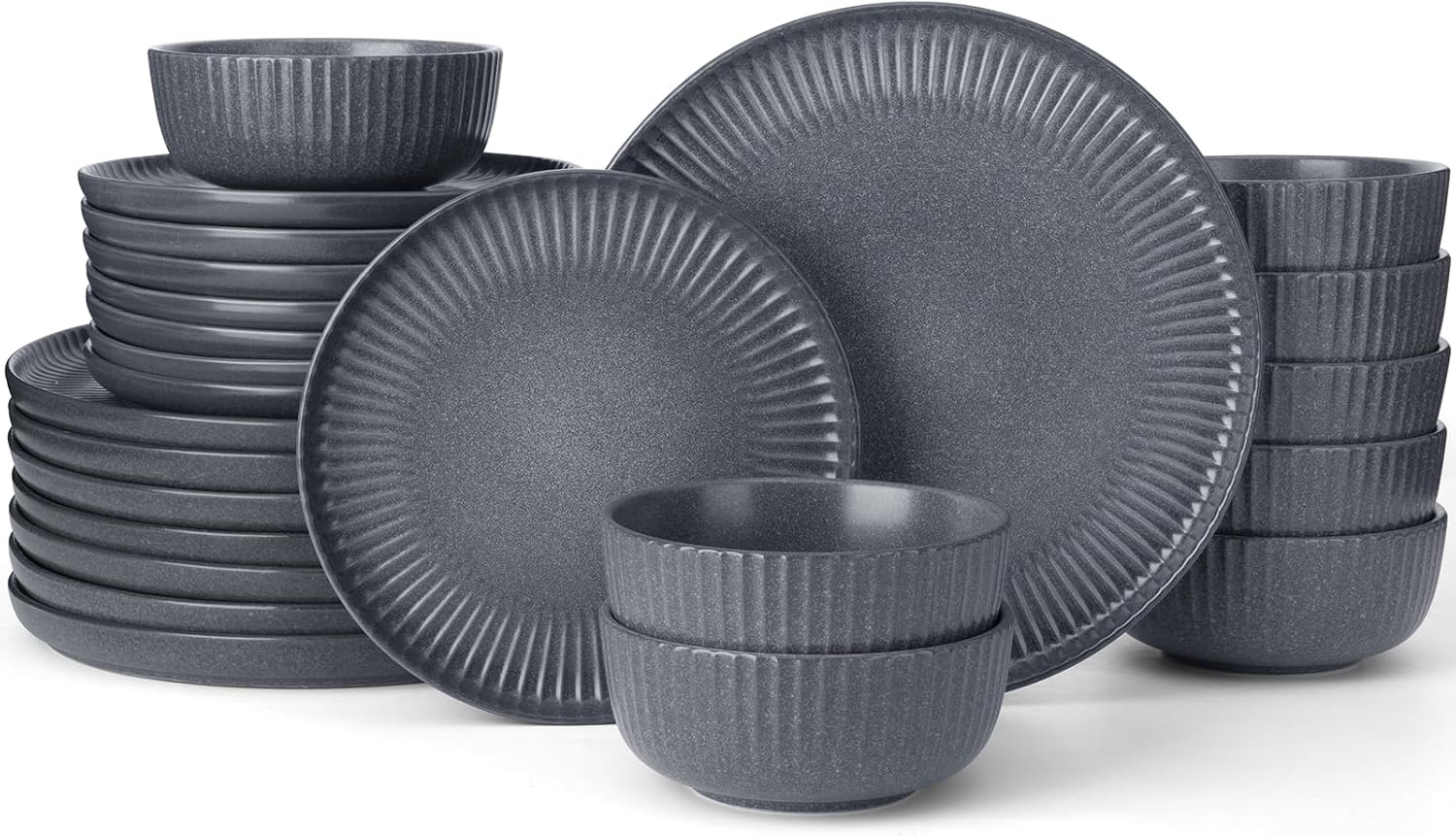 - [Elegant & modern]: The dinner set features a distinctive handcrafted reactive glaze with ribbed textures, exuding a warm and inviting allure