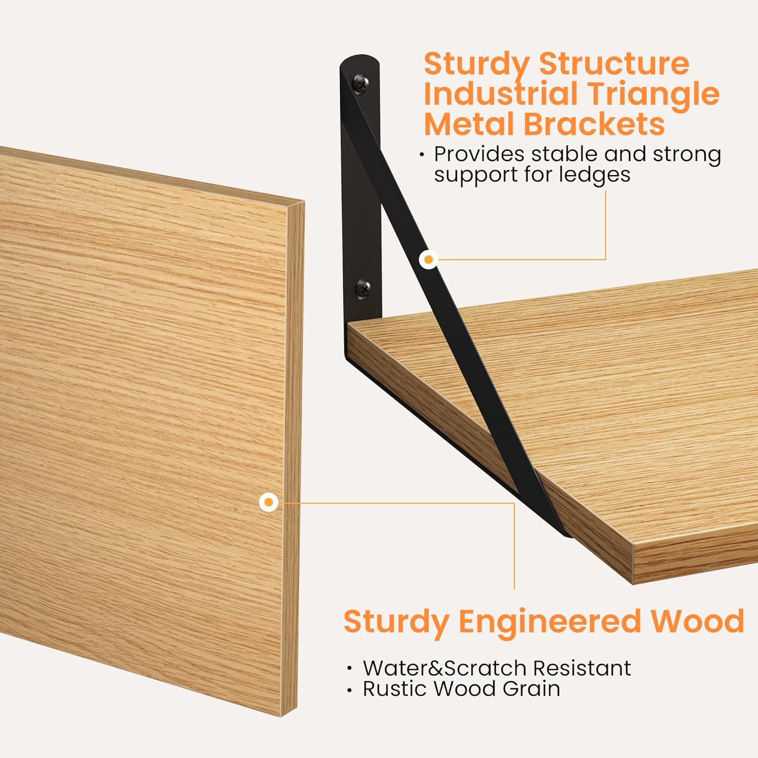 - [2 Assembling Styles] - The uniquely designed smooth surface metal triangular bracket can be installed on the top or bottom of the shelf. Depending on your preference, you can assemble it up or down to create your unique home style.