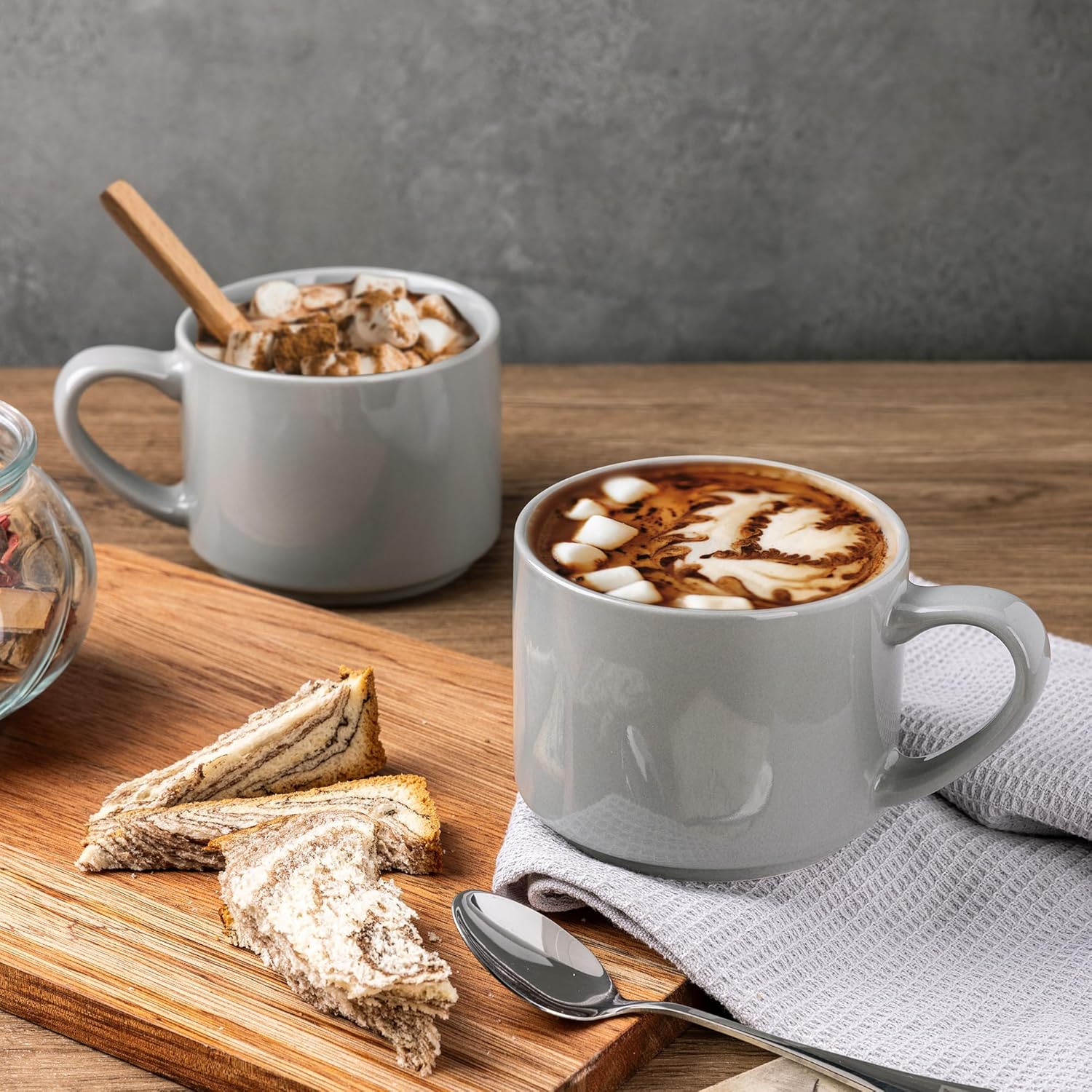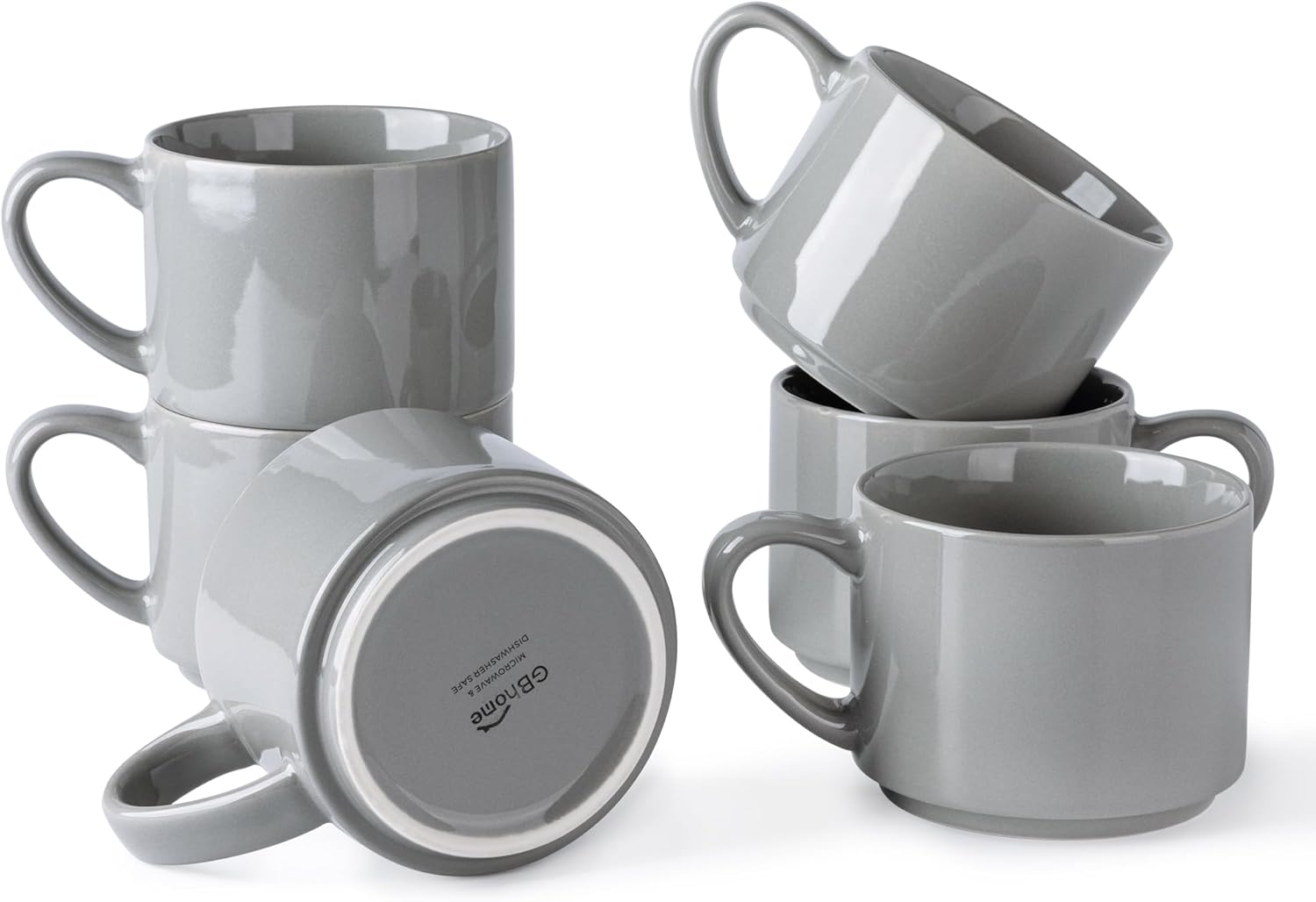 GBHOME 14OZ Stackable Ceramic Mugs Set of 6, Modern Coffee Mugs for Hot Drinks, Grey, 14 Fluid Ounces, 6 Count