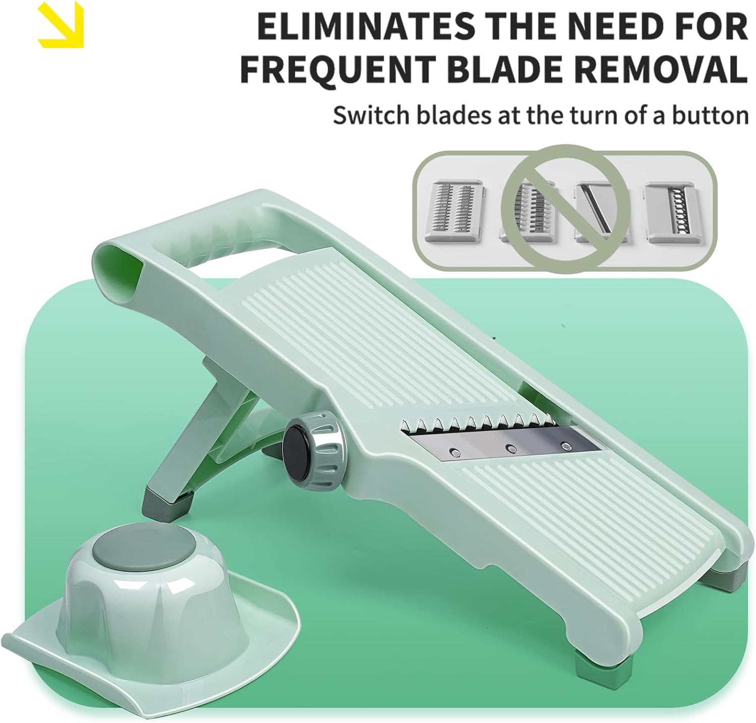 - Saving Space and Cooking faster: The built-in multipurpose blade design, just adjust button to adjust thickness or change cutting options, spend less time and make cooking faster and easier. Unit folds flat for easy storage in a drawer.