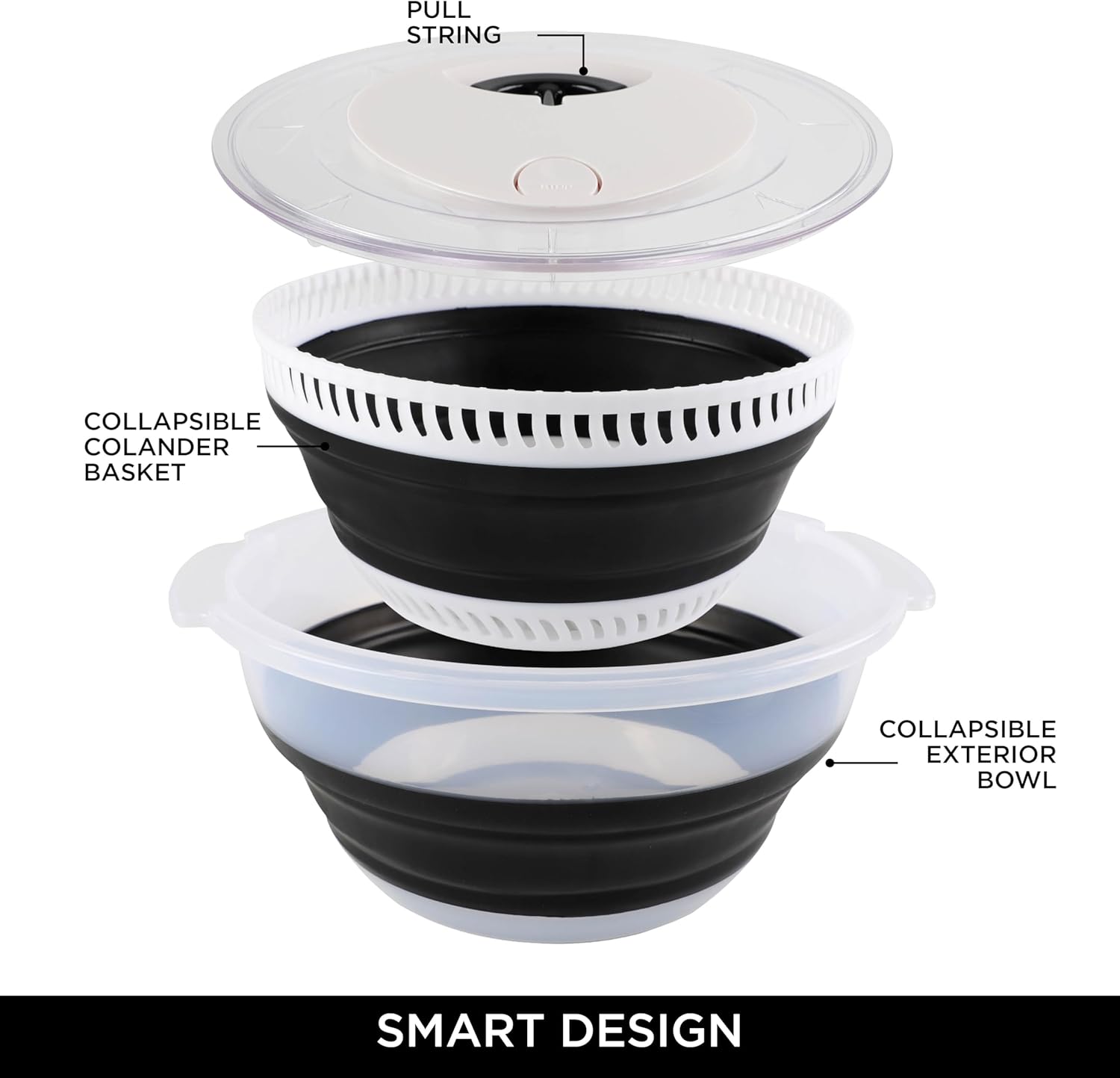 COOK WITH COLOR Collapsible Salad Spinner - 4 QT Space Saving Lettuce Dryer with Folding Collapsible Colander Great for Washing and Drying Fruit and Vegetables (Black)