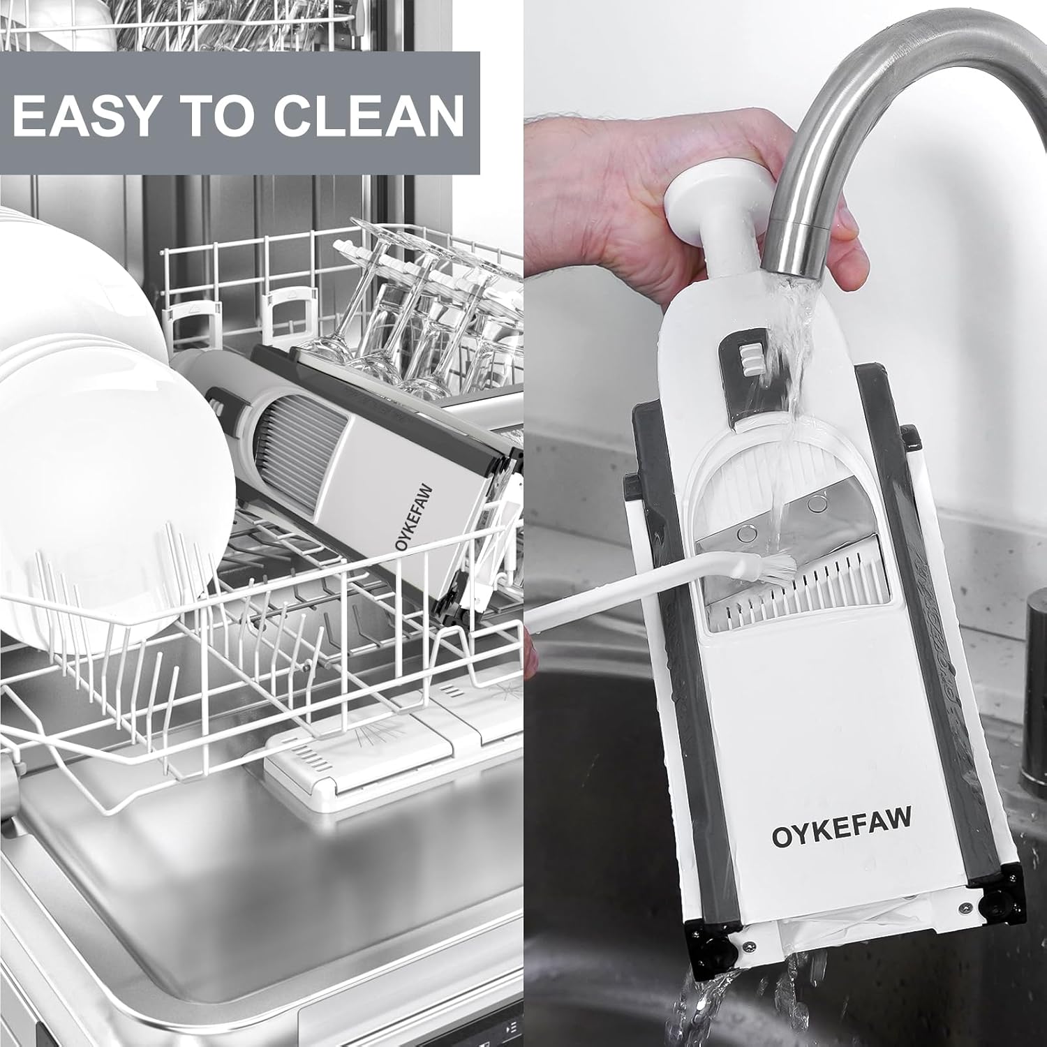 - Easy To Clean:Our kitchen chopper vegetable cutter has a collapsible design that is easy to clean, You can easily remove food residues under the tap with the small brush we gifted, It is also dishwahser safe. The slicer with suitable size takes up a little counter or cupboard space, and is a great tool for anyone's kitchen.