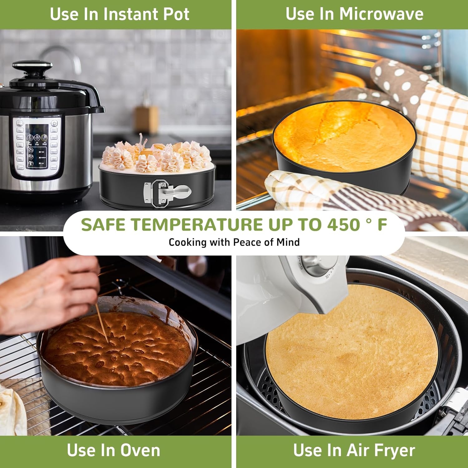 - Multi-Purpose: The well-designed 7-inch springform pans are ideal choices for making cheesecake, quiche, mousse, deep dish pizza, smash cakes, various pies, cookies, and is also the best tool for DIY desserts, allowing you to enjoy your baking time