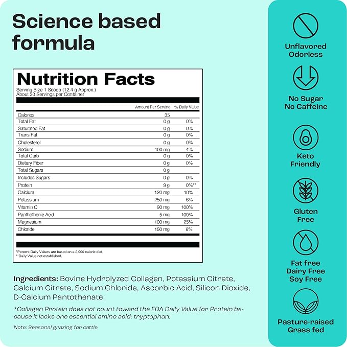 - Clean and Pure Ingredients - Sourced from grass-fed, pasture-raised cows free from hormones and GMOs, our collagen peptides for women and men is crafted with high-quality ingredients to support your well-being. Note: Grazing patterns influenced by seasonal availability.