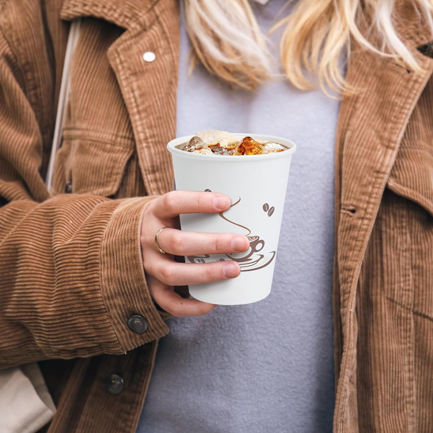 - Unique Style: These 12 oz paper cups, featuring a strong coffee and coffee bean pattern, have a memorable paper cup design that will stand out in a busy traditional hall or a jam-packed event